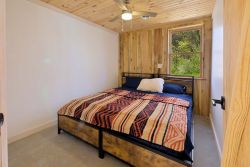 The lodge features a fully equipped kitchen with a gas range, dishwasher, refrigerator/freezer, a bar area with stools and all of your basic kitchen needs. The dining area has a large table to seat 10 and comfy cushioned chairs. Sleep in 4 comfortable bedrooms with XL twin beds (which could be converted to a king), with two bathrooms, a covered back porch with outdoor charcoal grill.